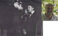 Der Geschäftsführer des Theatersommers Haag Gottfried Schwaiger, bei der Siegerehrung beim „Stoa lupfn" im Gasthaus Stöffelbauer, 1978.