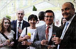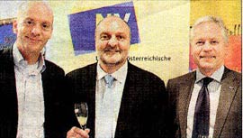 Gottfried Schwaiger beim Anstoßen mit Thomas Bene (bene Büromöbel) und Generaldirektor Dr. Hubert Schultes (NÖ Versicherung).