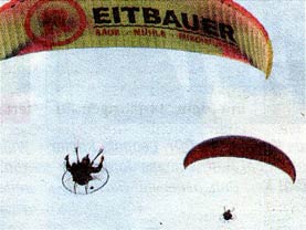 Die Haidershofner Firma Reitbauer Mühle begrüßte die Theatersommergäste mit einer beeindruckenden Fallschirmeinlage.