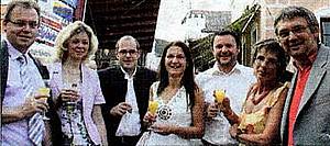 Die Firma Papst übernahm heuer erstmals den mehrwöchigen Aufbau der Theatertribüne, v.li. Helmut und Gabriele Scherzer, Roland Ecker, Claudia und Gerhard Hirt! sowie Angelika und Martin Haberl.
